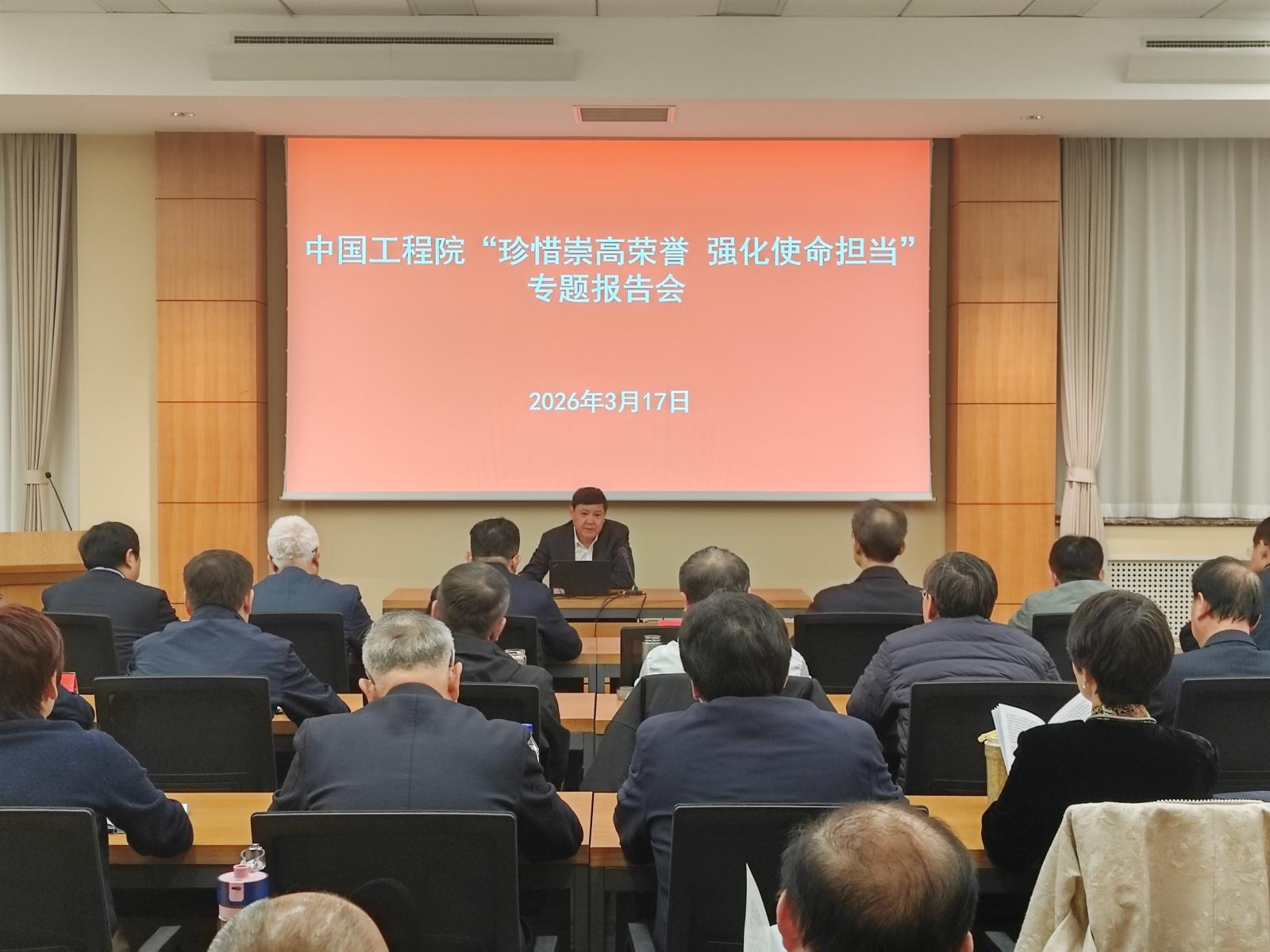 3月17日,中国工程院在中央党校举办了“珍惜崇高荣誉 强化使命担当”专题报告会。院党组书记、院长李晓红以“珍惜崇高荣誉 强化使命担当”为题,给2025年当选的院士作了专题报告。报告会由院党组成员、副院长钟志华主持,院党组成员、秘书长陈建峰,2025年当选院士、院机关有关部门工作人员参加了报告会。